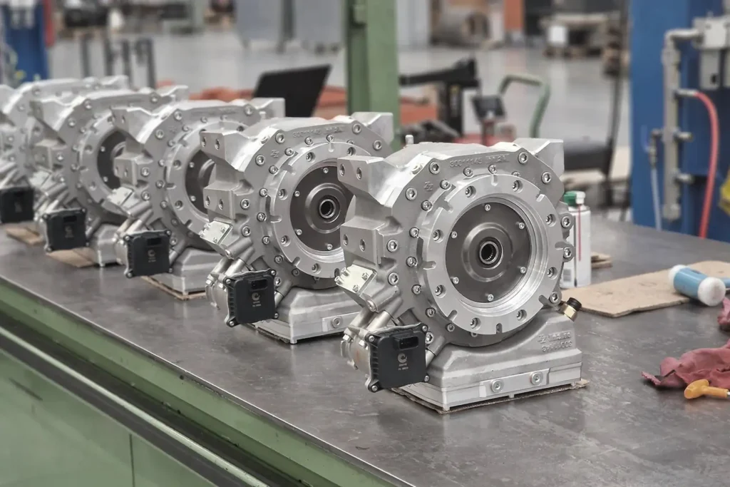 Our Two-Speed Gearbox is designed for OEMs developing electric and hybrid vehicles requiring compact size, high torque, and seamless integration. With a modular layout and integrated brakes, it’s ideal for wheeled or tracked vehicles in industrial, off-road, autonomous, and defense applications. Its robust build and high reduction ratios deliver reliable performance in demanding conditions.